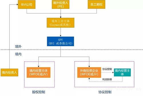 通常來說,有以下四個(gè)步驟實(shí)現(xiàn) VIE 結(jié)構(gòu): (一)設(shè)立海外第一層權(quán)益主體——BVI 公司 在英屬維爾京群島(BVI)注冊(cè)成立第一層權(quán)益主體 BVI 公司的原因?yàn),BVI 對(duì)公司注冊(cè)的要求簡(jiǎn)單,成立程序快捷、維續(xù)成本低廉、保密性高;寬松的外匯管制;無須繳付任何所得稅、預(yù)提稅、資本利得稅、資本轉(zhuǎn)移稅、繼承稅、遺產(chǎn)稅或財(cái)產(chǎn)稅。BVI 作為創(chuàng)始股東的持股主體,股東用自己 100% 持有的 BVI 公司持有其在開曼公司的股份,而非個(gè)人直接在開曼公司持股,若以后開曼公司有分紅或者出售股票所得收入,該項(xiàng)收入進(jìn)入 BVI 公司而非個(gè)人,BVI 免稅且具保密性,股東避免了被立即征收個(gè)稅,具有遞延納稅或者可能免稅的功能。 (二)設(shè)立海外第二級(jí)權(quán)益主體——開曼公司 現(xiàn)紐約證券交易所、納斯達(dá)克交易所和香港聯(lián)交所等國際知名交易所都接受注冊(cè)在開曼群島、英屬維爾京群島(BVI)的公司掛牌上市。但因 BVI 注冊(cè)公司透明度低不易被接受,所以選擇開曼作為上市主體。 (三)設(shè)立海外第三級(jí)權(quán)益主體——香港殼公司 香港跟中國大陸有稅收優(yōu)惠政策,即《關(guān)于建立更緊密經(jīng)貿(mào)關(guān)系的安排》的英文簡(jiǎn)稱。包括中央政府與香港特區(qū)政府簽署的《內(nèi)地與香港關(guān)于建立更緊密經(jīng)貿(mào)關(guān)系的安排》。設(shè)置一層香港,未來大陸公司向股東分紅等可能會(huì)享受一些稅收優(yōu)惠政策;從具體注冊(cè)操作層面講,用香港作為股東在境內(nèi)設(shè)立外商投資企業(yè)(WFOE),需要對(duì)股東進(jìn)行公證,而香港公司的公證費(fèi)用和時(shí)間成本,均比對(duì)開曼進(jìn)行公證節(jié)約很多。 (四)香港殼公司在境內(nèi)設(shè)立 WFOE(Wholly Foreign Owned Enterprise) WFOE與境內(nèi)運(yùn)營實(shí)體公司簽訂一系列協(xié)議,達(dá)到利潤轉(zhuǎn)移及非股權(quán)控制的目的。 |