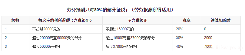 個人所得稅勞務報酬指的是個人獨立從事設計、安裝、制圖、醫(yī)療、電影、音樂等方面的工作,獲得的勞務就需要交個人所得稅勞務報酬,關于個人所得稅勞務報酬的繳納也是實行的稅收分段繳納制度,具體分為幾段,每段是多少的適用稅率,個人所得稅勞務報酬稅率表請看下文。 個人所得稅勞務報酬稅率表 勞務報酬的三檔稅率 勞務報酬的三檔稅率是預繳稅率,即按次預繳,年末匯算清繳。三擋預繳稅率的具體如下: 1、勞務收入低于4000元,基本扣除800元,稅率為20% 2、勞務收入高于4000元,基本扣除率20%,稅率為20% 3、勞務收入高于20000元,低于50000元,基本扣除率20%,稅率30% 4、勞務收入高于50000元,基本扣除率20%,稅率40% 因此,勞務報酬的預繳稅率,需要根據取得勞務收入的實際金額來確定應預繳的個人所得稅稅率到底是多少,以及應預扣預繳的稅金金額。 |
