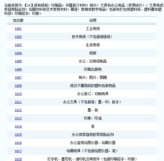 商標(biāo)第十六大類包含哪些 【第十六類】紙和紙板,不屬別類的紙和紙板制品;印刷品;裝訂用品;照片;文具;文具或家庭用粘合劑;美術(shù)用品;畫筆;打字機(jī)和辦公用品(家具除外);教育或教學(xué)用品(儀器除外);包裝用塑料物品(不屬別類的);印刷鉛字;印版。 商標(biāo)第十六大類明細(xì) 【1601 組】 工業(yè)用紙 【1602 組】 技術(shù)用紙(不包括絕緣紙) 【1603 組】 生活用紙 【1604 組】 紙板 【1605 組】 辦公、日用紙制品 【1606 組】 印刷出版物 【1607 組】 照片,圖片,圖畫 【1608 組】 紙牌,撲克牌 【1609 組】 紙及不屬別類的塑料包裝物品 【1610 組】 辦公裝訂、切削用具 【1611 組】 辦公文具(不包括筆,墨,印,膠水) 【1612 組】 墨,硯 【1613 組】 印章,印油 【1614 組】 筆 【1615 組】 辦公或家庭用膠帶或粘合劑 【1616 組】 辦公室用繪圖儀器,繪畫儀器 【1617 組】 繪畫用具(不包括繪圖儀器,筆) 【1618 組】 打字機(jī)、謄寫機(jī)、油印機(jī)及其附件(包括印刷鉛字、印版) 【1619 組】 教學(xué)用具(不包括教學(xué)實(shí)驗(yàn)用儀器) 【1620 組】 室內(nèi)模型物(不包括教學(xué)用模型標(biāo)本) 【1621 組】 單一商品 【注釋】 第十六類主要包括紙、紙制品和辦公用品。 本類尤其包括: ——切紙刀; ——油印機(jī); ——包裝用塑料紙、塑料提兜和塑料袋。 本類尤其不包括: ——某些紙制品和紙板制品(查閱按字母順序排列的商品分類表); ——顏料(第二類); ——藝術(shù)家用手工具(如修平刀、雕塑鑿刀)(第八類)。 以上是91開業(yè)網(wǎng)小編為您整理的關(guān)于商標(biāo)第十六大類包含哪些,商標(biāo)第十六大類明細(xì)的內(nèi)容,希望對(duì)您有所幫助。 |