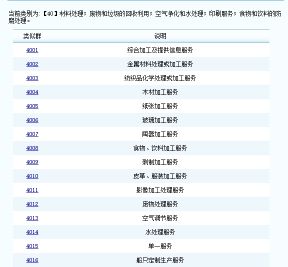 商標(biāo)第四十大類(lèi)包含哪些 【第四十類(lèi)】材料處理。 商標(biāo)第四十大類(lèi)明細(xì) 【4001 組】 綜合加工及提供信息服務(wù) 【4002 組】 金屬材料處理或加工服務(wù) 【4003 組】 紡織品化學(xué)處理或加工服務(wù) 【4004 組】 木材加工服務(wù) 【4005 組】 紙張加工服務(wù) 【4006 組】 玻璃加工服務(wù) 【4007 組】 陶器加工服務(wù) 【4008 組】 食物、飲料加工服務(wù) 【4009 組】 剝制加工服務(wù) 【4010 組】 皮革、服裝加工服務(wù) 【4011 組】 影像加工處理服務(wù) 【4012 組】 污物處理服務(wù) 【4013 組】 空氣調(diào)節(jié)服務(wù) 【4014 組】 水凈化服務(wù) 【4015 組】 單一服務(wù) 【注釋】 第四十類(lèi)主要包括沒(méi)有列入其他類(lèi)別的,對(duì)有機(jī)物質(zhì)、無(wú)機(jī)物質(zhì)或物品進(jìn)行機(jī)械或者化學(xué)處理或者加工的服務(wù)。 按分類(lèi)的要求,只有在為他人進(jìn)行處理或加工的情況下,商標(biāo)才視為服務(wù)標(biāo)志。根據(jù)分類(lèi)的同一要求,在某人將經(jīng)過(guò)處理或加工的物質(zhì)或物品進(jìn)行交易的各種情況下,商標(biāo)都被視為商品標(biāo)志。 本類(lèi)尤其包括: ——對(duì)物品或物質(zhì)進(jìn)行加工的服務(wù),包括改變其主要特性的處理服務(wù)(如染服裝);按正常分類(lèi),維修服務(wù)應(yīng)該列入第三十七類(lèi),但若是進(jìn)行了這樣的改變,即可列入第四十類(lèi)(如汽車(chē)防沖擊裝置的鍍鉻處理); ——在物質(zhì)生產(chǎn)或建筑物建造過(guò)程中的材料處理服務(wù),如切割、加工成形,磨光或金屬鍍層方面的服務(wù)。 本類(lèi)尤其不包括: ——修理服務(wù)(第三十七類(lèi))。 以上是91開(kāi)業(yè)網(wǎng)小編為您整理的關(guān)于商標(biāo)第四十大類(lèi)包含哪些,商標(biāo)第四十大類(lèi)明細(xì)的內(nèi)容,希望對(duì)您有所幫助。 |