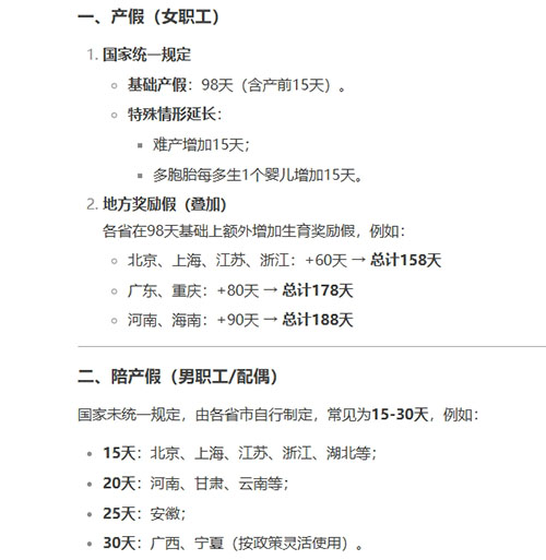 2022年陪產(chǎn)假國家規(guī)定是什么 產(chǎn)假對于大多數(shù)人來說都是非常重要的一個假期。在我們的現(xiàn)實(shí)生活中經(jīng)常發(fā)生,用人單位不休產(chǎn)假的情況。實(shí)際上我國法律對于產(chǎn)假是有著明確的規(guī)定的,那么陪產(chǎn)假新規(guī)定的內(nèi)容是怎樣的? 在我國現(xiàn)行的《勞動法》中,目前對女職工休產(chǎn)假的具體規(guī)定為98天,而男方陪產(chǎn)假是根據(jù)各地正則不同,陪產(chǎn)假天數(shù)也不同。 《女職工勞動保護(hù)特別規(guī)定》第七條 女職工生育享受98天產(chǎn)假,其中產(chǎn)前可以休假15天;難產(chǎn)的,增加產(chǎn)假15天;生育多胞胎的,每多生育1個嬰兒,增加產(chǎn)假15天。 女職工懷孕未滿4個月流產(chǎn)的,享受15天產(chǎn)假;懷孕滿4個月流產(chǎn)的,享受42天產(chǎn)假。 陪產(chǎn)假,指的是希望通過法律的形式明確男性帶薪陪護(hù)假,為女性分擔(dān)生育責(zé)任提供機(jī)會保證,將會是立法理念的一個重大飛躍,表明在性別平等方面的立法朝著先進(jìn)的理念又邁出了一大步。但是男性陪產(chǎn)假并不是各個地方都有的。雖然個別省市的人口與計(jì)劃生育條例中有近似于陪產(chǎn)假的規(guī)定,但是,究竟如何實(shí)施,還要看當(dāng)?shù)氐恼摺?/div> 陪產(chǎn)假,又名陪護(hù)假,即依法登記結(jié)婚的夫妻,女方在享受產(chǎn)假期間,男方享受的有一定時(shí)間看護(hù)、照料對方的權(quán)利。勞動法等相關(guān)法律法規(guī)并未對陪產(chǎn)假做出明確的規(guī)定,具體要看各省、自治區(qū)、直轄市的實(shí)際規(guī)定,基本都見于各地的計(jì)劃生育條例中,法律地位也不高。當(dāng)然,還存在有的地方有陪產(chǎn)假,有的地方?jīng)]有陪產(chǎn)假的情況。 以上是玖邀開業(yè)網(wǎng)小編為您整理的關(guān)于2022年陪產(chǎn)假國家規(guī)定是什么的內(nèi)容,希望對您有所幫助。 |