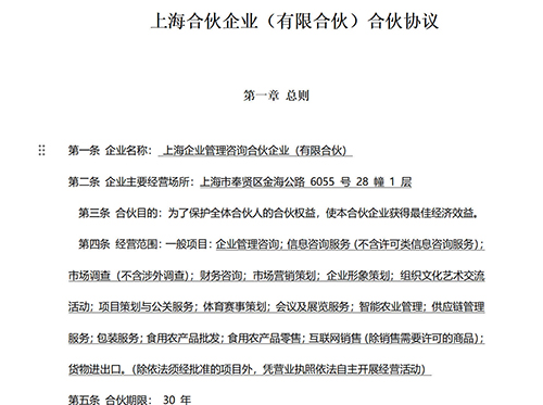 : 合伙協(xié)議應當載明下列事項:(一)合伙企業(yè)的名稱和主要經營場所的地點;(二)合伙目的和合伙經營范圍;(三)合伙人的姓名或者名稱、住所;(四)合伙人的出資方式、數(shù)額和繳付期限;(五)利潤分配、虧損分擔方式;(六)合伙事務 ...