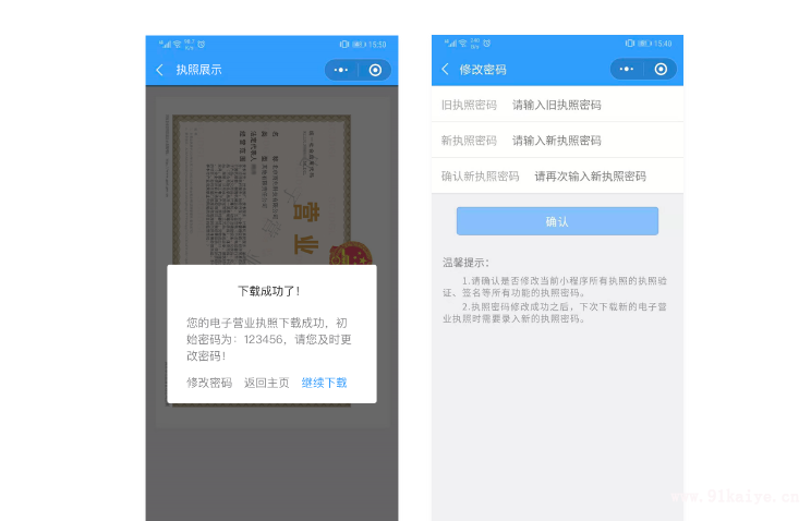 營業(yè)執(zhí)照電子版在哪里下載 電子營業(yè)執(zhí)照服務(wù)專區(qū) 網(wǎng)址:https://zzapp.gsxt.gov.cn/ 如何申領(lǐng)電子營業(yè)執(zhí)照 法定代表人是電子營業(yè)執(zhí)照的默認領(lǐng)取人。手機版電子營業(yè)執(zhí)照的首次領(lǐng)取只能由法定代表人通過手機等移動終端完成。法定代表人領(lǐng)取手機版電子營業(yè)執(zhí)照后,可自行或授權(quán)證照管理人員保管、持有、使用電子營業(yè)執(zhí)照。法定代表人或者證照管理人員可授權(quán)辦事人持電子營業(yè)執(zhí)照辦理相關(guān)的政務(wù)、商務(wù)、公共服務(wù)等業(yè)務(wù)。證照管理員和辦事人經(jīng)過授權(quán)后可下載電子營業(yè)執(zhí)照并使用。 具體申領(lǐng)流程主要分為: 第一步:進行實名認證,只有通過實名認證才可以下載執(zhí)照;如果實名認證不通過,需要到當?shù)氐氖袌霰O(jiān)督部門下載電子營業(yè)執(zhí)照。實名認證方式有: 1)微信小程序:先輸入微信支付密碼,獲取微信賬號的實名信息,包括姓名和證件號碼,再進行人臉識別,完成實名認證。 2)支付寶小程序:授權(quán)獲取支付寶賬號的實名信息,包括姓名和證件號碼,再授權(quán)采集人臉信息進行實名認證。 第二步:通過實名認證后,選擇企業(yè)所在的登記地,顯示該登記地的所有可下載和已下載的執(zhí)照記錄,在“可下載執(zhí)照記錄”中選擇企業(yè)名稱,下載該企業(yè)的電子營業(yè)執(zhí)照。 第三步:下載電子營業(yè)執(zhí)照前,需要閱讀并同意《執(zhí)照下載聲明》。如果本APP上修改過密碼,下載時需要輸入修改后的密碼。 第四步:執(zhí)照下載成功后,可以繼續(xù)下載其他的執(zhí)照;也可以修改本手機當前APP已經(jīng)下載的所有執(zhí)照的密碼,或者返回主頁進行其他的操作。 |