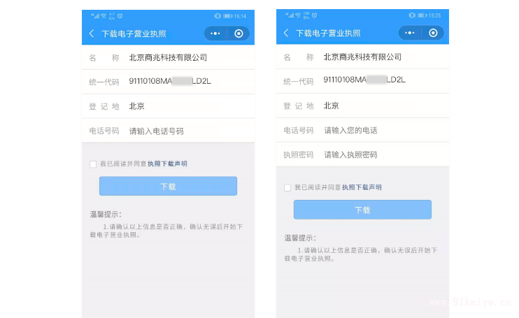 如何申領(lǐng)電子營業(yè)執(zhí)照 法定代表人是電子營業(yè)執(zhí)照的默認(rèn)領(lǐng)取人。手機(jī)版電子營業(yè)執(zhí)照的首次領(lǐng)取只能由法定代表人通過手機(jī)等移動(dòng)終端完成。法定代表人領(lǐng)取手機(jī)版電子營業(yè)執(zhí)照后,可自行或授權(quán)證照管理人員保管、持有、使用電子營業(yè)執(zhí)照。法定代表人或者證照管理人員可授權(quán)辦事人持電子營業(yè)執(zhí)照辦理相關(guān)的政務(wù)、商務(wù)、公共服務(wù)等業(yè)務(wù)。證照管理員和辦事人經(jīng)過授權(quán)后可下載電子營業(yè)執(zhí)照并使用。 具體申領(lǐng)流程主要分為: 第一步:進(jìn)行實(shí)名認(rèn)證,只有通過實(shí)名認(rèn)證才可以下載執(zhí)照;如果實(shí)名認(rèn)證不通過,需要到當(dāng)?shù)氐氖袌霰O(jiān)督部門下載電子營業(yè)執(zhí)照。實(shí)名認(rèn)證方式有: 1)微信小程序:先輸入微信支付密碼,獲取微信賬號(hào)的實(shí)名信息,包括姓名和證件號(hào)碼,再進(jìn)行人臉識(shí)別,完成實(shí)名認(rèn)證。 2)支付寶小程序:授權(quán)獲取支付寶賬號(hào)的實(shí)名信息,包括姓名和證件號(hào)碼,再授權(quán)采集人臉信息進(jìn)行實(shí)名認(rèn)證。 第二步:通過實(shí)名認(rèn)證后,選擇企業(yè)所在的登記地,顯示該登記地的所有可下載和已下載的執(zhí)照記錄,在“可下載執(zhí)照記錄”中選擇企業(yè)名稱,下載該企業(yè)的電子營業(yè)執(zhí)照。 第三步:下載電子營業(yè)執(zhí)照前,需要閱讀并同意《執(zhí)照下載聲明》。如果本APP上修改過密碼,下載時(shí)需要輸入修改后的密碼。 第四步:執(zhí)照下載成功后,可以繼續(xù)下載其他的執(zhí)照;也可以修改本手機(jī)當(dāng)前APP已經(jīng)下載的所有執(zhí)照的密碼,或者返回主頁進(jìn)行其他的操作。 以上是玖邀開業(yè)網(wǎng)小編為您整理的關(guān)于如何申領(lǐng)電子營業(yè)執(zhí)照的內(nèi)容,希望對(duì)您有所幫助。 |