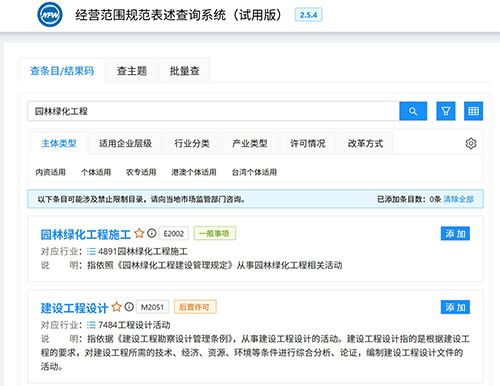 上海辦理園林綠化工程公司營業(yè)執(zhí)照經營范圍查詢 園林綠化工程公司營業(yè)執(zhí)照經營范圍:一般項目:園林綠化工程施工;城市公園管理;城市綠化管理;花卉種植;樹木種植經營;草種植;醫(yī)學研究和試驗發(fā)展;農業(yè)機械銷售;園藝產品銷售;農副產品銷售;禮品花卉銷售;農、林、牧、副、漁業(yè)專業(yè)機械的銷售;花卉綠植租借與代管理;名勝風景區(qū)管理;游覽景區(qū)管理;林業(yè)產品銷售;園藝產品種植;信息咨詢服務(不含許可類信息咨詢服務);技術服務、技術開發(fā)、技術咨詢、技術交流、技術轉讓、技術推廣。(除依法須經批準的項目外,憑營業(yè)執(zhí)照依法自主開展經營活動) 園林綠化工程公司營業(yè)執(zhí)照經營范圍許可項目:建設工程施工;建設工程設計。(依法須經批準的項目,經相關部門批準后方可開展經營活動,具體經營項目以相關部門批準文件或許可證件為準)一般項目:園林綠化工程施工;城市公園管理;建筑物清潔服務;專業(yè)保潔、清洗、消毒服務;城市綠化管理;建筑工程機械與設備租賃;建筑裝飾材料銷售;花卉綠植租借與代管理;禮品花卉銷售;互聯(lián)網銷售(除銷售需要許可的商品);肥料銷售;農副產品銷售;日用品銷售;五金產品零售;五金產品批發(fā);金屬工具銷售;物業(yè)管理;家政服務;環(huán)保咨詢服務;專業(yè)設計服務。(除依法須經批準的項目外,憑營業(yè)執(zhí)照依法自主開展經營活動) 園林綠化工程公司營業(yè)執(zhí)照經營范圍一般項目:園林綠化工程施工;城市綠化管理;普通機械設備安裝服務;專業(yè)保潔、清洗、消毒服務;信息咨詢服務(不含許可類信息咨詢服務);技術服務、技術開發(fā)、技術咨詢、技術交流、技術轉讓、技術推廣;禮品花卉銷售;工藝美術品及禮儀用品銷售(象牙及其制品除外);家具銷售;機械設備銷售;五金產品批發(fā);五金產品零售;金屬工具銷售;金屬材料銷售;金屬制品銷售;建筑裝飾材料銷售。(除依法須經批準的項目外,憑營業(yè)執(zhí)照依法自主開展經營活動)許可項目:建設工程施工;建設工程設計;住宅室內裝飾裝修。(依法須經批準的項目,經相關部門批準后方可開展經營活動,具體經營項目以相關部門批準文件或許可證件為準) 園林綠化工程公司營業(yè)執(zhí)照經營范圍一般項目:園林綠化工程施工;城市綠化管理;花卉綠植租借與代管理;花卉種植;禮品花卉銷售;園藝產品銷售;水果種植;食用農產品批發(fā);食用農產品零售;工藝美術品及禮儀用品銷售(象牙及其制品除外);竹材采運;竹制品銷售;竹制品制造【分支機構經營】。(除依法須經批準的項目外,憑營業(yè)執(zhí)照依法自主開展經營活動) 園林綠化工程公司營業(yè)執(zhí)照經營范圍一般項目:園林綠化工程施工;城市綠化管理;城鄉(xiāng)市容管理;工程管理服務;市政設施管理;裝卸搬運;住宅水電安裝維護服務;信息咨詢服務(不含許可類信息咨詢服務);土石方工程施工;工程技術服務(規(guī)劃管理、勘察、設計、監(jiān)理除外);建筑工程機械與設備租賃;建筑工程用機械銷售;建筑材料銷售;水泥制品銷售;機械設備銷售;五金產品零售;五金產品批發(fā);金屬結構銷售;花卉種植;禮品花卉銷售;林業(yè)產品銷售;樹木種植經營。(除依法須經批準的項目外,憑營業(yè)執(zhí)照依法自主開展經營活動)許可項目:建設工程施工;住宅室內裝飾裝修。(依法須經批準的項目,經相關部門批準后方可開展經營活動,具體經營項目以相關部門批準文件或許可證件為準) 園林綠化工程公司營業(yè)執(zhí)照經營范圍一般項目:園林綠化工程施工;城市綠化管理;機械設備租賃;建筑工程機械與設備租賃;建筑材料銷售;日用玻璃制品銷售;技術玻璃制品銷售;五金產品批發(fā);五金產品零售;專業(yè)保潔、清洗、消毒服務。(除依法須經批準的項目外,憑營業(yè)執(zhí)照依法自主開展經營活動)許可項目:建筑勞務分包;施工專業(yè)作業(yè);建設工程施工。(依法須經批準的項目,經相關部門批準后方可開展經營活動,具體經營項目以相關部門批準文件或許可證件為準) 園林綠化工程公司營業(yè)執(zhí)照經營范圍許可項目:建設工程施工;建筑勞務分包;施工專業(yè)作業(yè);建設工程設計;住宅室內裝飾裝修;建設工程監(jiān)理。(依法須經批準的項目,經相關部門批準后方可開展經營活動,具體經營項目以相關部門批準文件或許可證件為準)一般項目:園林綠化工程施工;市政設施管理;城鄉(xiāng)市容管理;規(guī)劃設計管理;土石方工程施工;金屬門窗工程施工;城市綠化管理;工程管理服務;建筑物清潔服務;水污染治理;環(huán)境保護監(jiān)測;水環(huán)境污染防治服務;管道運輸設備銷售;陸地管道運輸;金屬結構銷售;高品質特種鋼鐵材料銷售;五金產品零售;五金產品批發(fā);機械設備銷售;機械設備租賃;機械電氣設備銷售。(除依法須經批準的項目外,憑營業(yè)執(zhí)照依法自主開展經營活動) 園林綠化工程公司營業(yè)執(zhí)照經營范圍許可項目:建設工程設計(依法須經批準的項目,經相關部門批準后方可開展經營活動,具體經營項目以相關部門批準文件或許可證件為準)一般項目:園林綠化工程施工;城市綠化管理;花卉種植(除中國稀有和特有的珍貴優(yōu)良品種);花卉綠植租借與代管理;專業(yè)保潔、清洗、消毒服務;物