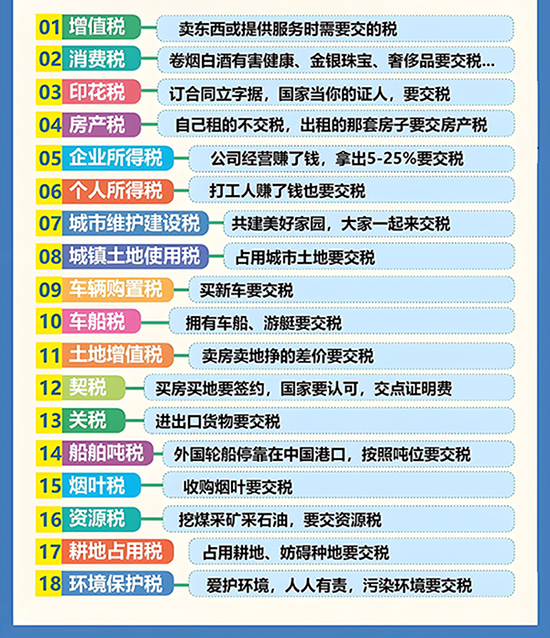 1.按課稅對(duì)象為標(biāo)準(zhǔn)分類: 流轉(zhuǎn)稅:以商品生產(chǎn)流轉(zhuǎn)額和非生產(chǎn)流轉(zhuǎn)額為課稅對(duì)象征收的一類稅(我國(guó)稅制結(jié)構(gòu)中的主體稅類,包括增值稅、消費(fèi)稅、營(yíng)業(yè)稅和關(guān)稅等)。 所得稅:又稱收益稅,是指以各種所得額為課稅對(duì)象的一類稅(我國(guó)稅制結(jié)構(gòu)中的主體稅類,包括企業(yè)所得稅、個(gè)人所得稅等稅種)。 財(cái)產(chǎn)稅:是指以納稅人所擁有或支配的財(cái)產(chǎn)為課稅對(duì)象的按課稅對(duì)象分類的一類稅(包括遺產(chǎn)稅、房產(chǎn)稅、契稅、車輛購置稅和車船稅等)。 行為稅:是指以納稅人的某些特定行為為課稅對(duì)象的一類稅(諸如城市維護(hù)建設(shè)稅、印花稅等)。 資源稅:是指對(duì)在我國(guó)境內(nèi)從事資源開發(fā)的單位和個(gè)人征收的一類稅(如資源稅、土地增值稅、耕地占用稅和城鎮(zhèn)土地使用稅等)。 2.按稅收的計(jì)算依據(jù)為標(biāo)準(zhǔn)分類: 從量稅:是指以課稅對(duì)象的數(shù)量(重量、面積、件數(shù))為依據(jù),按固定稅額計(jì)征的一類稅。從量稅實(shí)行定額稅率,具有計(jì)算簡(jiǎn)便等優(yōu)點(diǎn)。如我國(guó)現(xiàn)行的資源稅、車船稅和土地使用稅等。 從價(jià)稅:是指以課稅對(duì)象的價(jià)格為依據(jù),按一定比例計(jì)征的一類從價(jià)稅實(shí)行比例稅率和累進(jìn)稅率,稅收負(fù)擔(dān)比較合理。如我國(guó)現(xiàn)行的增值稅、營(yíng)業(yè)稅、關(guān)稅和各種所得稅等稅種。按稅收與價(jià)格的關(guān)系為標(biāo)準(zhǔn)分類:上海公司注冊(cè)(hxfactory.cn) 價(jià)內(nèi)稅:是指稅款在應(yīng)稅商品價(jià)格內(nèi),作為商品價(jià)格一個(gè)組成部分的—類稅。如我國(guó)現(xiàn)行的消費(fèi)稅、營(yíng)業(yè)稅和關(guān)稅等稅種。 價(jià)外稅:是指稅款不在商品價(jià)格之內(nèi),不作為商品價(jià)格的一個(gè)組成部分的一類稅。如我國(guó)現(xiàn)行的增值稅(目前商品的價(jià)稅合一并不能否認(rèn)增值稅的價(jià)外稅性質(zhì))。 3.按是否有單獨(dú)的課稅對(duì)象、獨(dú)立征收為標(biāo)準(zhǔn)分類: 正稅:指與其他稅種沒有連帶關(guān)系,有特定的課稅對(duì)象,并按照規(guī)定稅率獨(dú)立征收的稅。征收附加稅或地方附加,要以正稅為依據(jù)。我國(guó)現(xiàn)行各個(gè)稅種,如增值稅、營(yíng)業(yè)稅、農(nóng)業(yè)稅等都是正稅。 附加稅:是指隨某種稅收按一定比例加征的稅。例如,外商投資企業(yè)和外國(guó)企業(yè)所得稅規(guī)定,企業(yè)在按照規(guī)定的企業(yè)所得稅率繳納企業(yè)所得稅的同時(shí),應(yīng)當(dāng)另按應(yīng)納稅所得額的3%繳納地方所得稅。該項(xiàng)繳納的地方所得稅,就是附加稅。 4.按稅收征收權(quán)限和收入支配權(quán)限分類: 中央稅:是指由中央政府征收和管理使用或由地方政府征收后全部劃解中央政府所有并支配使用的一類稅。如我國(guó)現(xiàn)行的關(guān)稅和消費(fèi)稅等。這類稅—般收入較大,征收范圍廣泛。 地方稅:是指由地方政府征收和管理使用的一類稅。如我國(guó)現(xiàn)行的個(gè)人所得稅、屠宰稅和筵席稅等(嚴(yán)格來講,我國(guó)的地方稅目前只有屠宰稅和筵席稅,其中根據(jù)中華人民共和國(guó)國(guó)務(wù)院令第516號(hào),筵席稅已經(jīng)失效)。這類稅一般收入穩(wěn)定,并與地方經(jīng)濟(jì)利益關(guān)系密切。 共享稅:是指稅收的管理權(quán)和使用權(quán)屬中央政府和地方政府共同擁有的一類稅。如我國(guó)現(xiàn)行的增值稅和資源稅等。這類稅直接涉及到中央與地方的共同利益。 5.按稅收的形態(tài)為標(biāo)準(zhǔn)分類: 實(shí)物稅:是指納稅人以各種實(shí)物充當(dāng)稅款交納的—類稅。如農(nóng)業(yè)稅。 貨幣稅:是指納稅人以貨幣形式交納的一類稅。在現(xiàn)代社會(huì)里,幾乎所有的稅種都是貨幣稅。 6.以管轄的對(duì)象為標(biāo)準(zhǔn)分類: 國(guó)內(nèi)稅收:是對(duì)本國(guó)經(jīng)濟(jì)單位和公民個(gè)人征收的各稅。 涉外稅種:是具有涉外關(guān)系的稅收。 7.按稅率的形式為標(biāo)準(zhǔn)分類: 比例稅:即對(duì)同一課稅對(duì)象,不論數(shù)額多少,均按同一比例征稅的稅種。 累進(jìn)稅:是隨著課稅對(duì)象數(shù)額的增加而逐級(jí)提高稅率的稅種。包括全額累進(jìn)稅率、超額累進(jìn)稅率和超率累進(jìn)稅率。 定額稅:是對(duì)每一單位的課稅對(duì)象按固定稅額征稅的稅種。 8.按征收管理的分工體系分類: 工商稅類:由稅務(wù)機(jī)關(guān)負(fù)責(zé)征收,以從事工業(yè)、商業(yè)和服務(wù)業(yè)的單位和個(gè)人為納稅人的各稅種的總稱,是我國(guó)現(xiàn)行稅制的主體部分,具體包括增值稅、消費(fèi)稅、營(yíng)業(yè)稅、資源稅、企業(yè)所得稅等。 關(guān)稅類:由海關(guān)負(fù)責(zé)征收,是對(duì)進(jìn)出境的貨物、物品征收的稅種的總稱,主要指進(jìn)出口關(guān)稅,以及對(duì)入境旅客行李物品和個(gè)人郵遞物品征收的進(jìn)口稅。 |