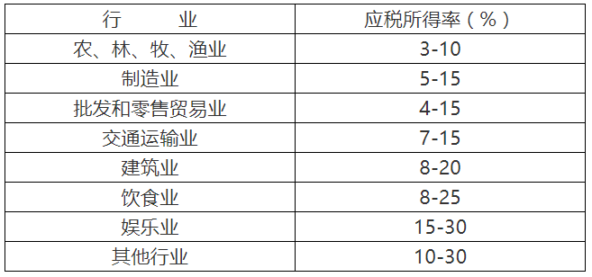 企業(yè)所得稅核定征收辦法(試行) 第一條為了加強企業(yè)所得稅征收管理,規(guī)范核定征收企業(yè)所得稅工作,保障國家稅款及時足額入庫,維護納稅人合法權(quán)益,根據(jù)《中華人民共和國企業(yè)所得稅法》及其實施條例、《中華人民共和國稅收征收管理法》及其實施細則的有關規(guī)定,制定本辦法。 第二條 本辦法適用于居民企業(yè)納稅人。 第三條 納稅人具有下列情形之一的,核定征收企業(yè)所得稅: (一)依照法律、行政法規(guī)的規(guī)定可以不設置賬簿的; (二)依照法律、行政法規(guī)的規(guī)定應當設置但未設置賬薄的; (三)擅自銷毀賬簿或者拒不提供納稅資料的; (四)雖設置賬簿,但賬目混亂或者成本資料、收入憑證、費用憑證殘缺不全,難以查賬的; (五)發(fā)生納稅義務,未按照規(guī)定的期限辦理納稅申報,經(jīng)稅務機關責令限期申報,逾期仍不申報的; (六)申報的計稅依據(jù)明顯偏低,又無正當理由的。 特殊行業(yè)、特殊類型的納稅人和一定規(guī)模以上的納稅人不適用本辦法。上述特定納稅人由國家稅務總局另行明確。 第四條 稅務機關應根據(jù)納稅人具體情況,對核定征收企業(yè)所得稅的納稅人,核定應稅所得率或者核定應納所得稅額。 具有下列情形之一的,核定其應稅所得率: (一)能正確核算(查實)收入總額,但不能正確核算(查實)成本費用總額的; (二)能正確核算(查實)成本費用總額,但不能正確核算(查實)收入總額的; (三)通過合理方法,能計算和推定納稅人收入總額或成本費用總額的。 納稅人不屬于以上情形的,核定其應納所得稅額。 第五條 稅務機關采用下列方法核定征收企業(yè)所得稅: (一)參照當?shù)赝愋袠I(yè)或者類似行業(yè)中經(jīng)營規(guī)模和收入水平相近的納稅人的稅負水平核定; (二)按照應稅收入額或成本費用支出額定率核定; (三)按照耗用的原材料、燃料、動力等推算或測算核定; (四)按照其他合理方法核定。 采用前款所列一種方法不足以正確核定應納稅所得額或應納稅額的,可以同時采用兩種以上的方法核定。采用兩種以上方法測算的應納稅額不一致時,可按測算的應納稅額從高核定。 第六條 采用應稅所得率方式核定征收企業(yè)所得稅的,應納所得稅額計算公式如下: 應納所得稅額=應納稅所得額×適用稅率 應納稅所得額=應稅收入額×應稅所得率 或:應納稅所得額=成本(費用)支出額/(1-應稅所得率)×應稅所得率 第七條 實行應稅所得率方式核定征收企業(yè)所得稅的納稅人,經(jīng)營多業(yè)的,無論其經(jīng)營項目是否單獨核算,均由稅務機關根據(jù)其主營項目確定適用的應稅所得率。 主營項目應為納稅人所有經(jīng)營項目中,收入總額或者成本(費用)支出額或者耗用原材料、燃料、動力數(shù)量所占比重最大的項目。 第八條 應稅所得率按下表規(guī)定的幅度標準確定: 第九條納稅人的生產(chǎn)經(jīng)營范圍、主營業(yè)務發(fā)生重大變化,或者應納稅所得額或應納稅額增減變化達到20%的,應及時向稅務機關申報調(diào)整已確定的應納稅額或應稅所得率。 第十條 主管稅務機關應及時向納稅人送達《企業(yè)所得稅核定征收鑒定表》(表樣附后),及時完成對其核定征收企業(yè)所得稅的鑒定工作。具體程序如下: (一)納稅人應在收到《企業(yè)所得稅核定征收鑒定表》后10個工作日內(nèi),填好該表并報送主管稅務機關。《企業(yè)所得稅核定征收鑒定表》一式三聯(lián),主管稅務機關和縣稅務機關各執(zhí)一聯(lián),另一聯(lián)送達納稅人執(zhí)行。主管稅務機關還可根據(jù)實際工作需要,適當增加聯(lián)次備用。 (二)主管稅務機關應在受理《企業(yè)所得稅核定征收鑒定表》后20個工作日內(nèi),分類逐戶審查核實,提出鑒定意見,并報縣稅務機關復核、認定。 (三)縣稅務機關應在收到《企業(yè)所得稅核定征收鑒定表》后30個工作日內(nèi),完成復核、認定工作。 納稅人收到《企業(yè)所得稅核定征收鑒定表》后,未在規(guī)定期限內(nèi)填列、報送的,稅務機關視同納稅人已經(jīng)報送,按上述程序進行復核認定。 第十一條稅務機關應在每年6月底前對上年度實行核定征收企業(yè)(hxfactory.cn)所得稅的納稅人進行重新鑒定。重新鑒定工作完成前,納稅人可暫按上年度的核定征收方式預繳企業(yè)所得稅;重新鑒定工作完成后,按重新鑒定的結(jié)果進行調(diào)整。 第十二條主管稅務機關應當分類逐戶公示核定的應納所得稅額或應稅所得率。主管稅務機關應當按照便于納稅人及社會各界了解、監(jiān)督的原則確定公示地點、方式。 納稅人對稅務機關確定的企業(yè)所得稅征收方式、核定的應納所得稅額或應稅所得率有異議的,應當提供合法、有效的相關證據(jù),稅務機關經(jīng)核實認定后調(diào)整有異議的事項。 第十三條 納稅人實行核定應稅所得率方式的,按下列規(guī)定申報納稅: (一)主管稅務機關根據(jù)納稅人應納稅額的大小確定納稅人按月或者按季預繳,年終匯算清繳。預繳方法一經(jīng)確定,一個納稅年度內(nèi)不得改變。 (二)納稅人應依照確定的應稅所得率計算納稅期間實際應繳納的稅額,進行預繳。按實際數(shù)額預繳有困難的,經(jīng)主管稅務機關同意,可按上一年度應納稅額的1/12或1/4預繳,或者按經(jīng)主管稅務機關認可的其他