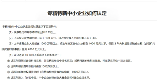專精特新中小企業(yè)認定需要同時滿足以下四項條件: 1. 從事特定細分市場時間達到2年以上。 2. 上年度研發(fā)費用總額不低于100萬元,且占營業(yè)收入總額比重不低于3%。 3. 上年度營業(yè)收入總額在1000萬元以上,或上年度營業(yè)收入總額在1000萬元以下,但近2年內(nèi)新增股權(quán)融資總額(合格機構(gòu)投資者的實繳額)達到2000萬元以上。 4. 評價得分達到60分以上或滿足下列條件之一: a. 近三年獲得過省級科技獎勵,并在獲獎單位中排名前三;或獲得國家級科技獎勵,并在獲獎單位中排名前五。 b. 近兩年研發(fā)費用總額均值在1000萬元以上。 c. 近兩年新增股權(quán)融資總額(合格機構(gòu)投資者的實繳額)6000萬元以上。 d. 近三年進入“創(chuàng)客中國”中小企業(yè)創(chuàng)新創(chuàng)業(yè)大賽全國500強企業(yè)組名單。 以上是玖邀開業(yè)小編整理的專精特新中小企業(yè),認定標準是什么?相關(guān)知識,相信大家通過以上知識都已經(jīng)對此有了大致的了解,如果您還遇到什么問題,歡迎咨詢在線客服 |
