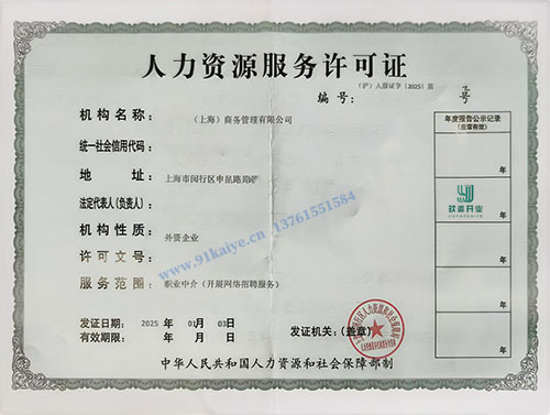 上海辦理人力資源服務(wù)許可證資料1、經(jīng)營性人力資源服務(wù)機(jī)構(gòu)從事職業(yè)中介活動行政許可申請表(含告知承諾書) 2、營業(yè)執(zhí)照副本 3、機(jī)構(gòu)法定代表人身份證或護(hù)照、簡歷 4、工作人員基本情況(勞動合同及單位繳納社保證明) 5、注冊地房產(chǎn)使用證明 6、工作設(shè)備情況 7、工作規(guī)范和章程 8、可行性研究報(bào)告 辦理人力資源服務(wù)許可證的流程1、受理:申請機(jī)構(gòu)在當(dāng)?shù)厝肆Y源和社會保障行政部門提交材料,即時(shí)審理。 2、審查:材料齊全的,人力資源和社會保障行政部門在受理申請之日起20日內(nèi)審查完畢。對提供的材料不全的,會告知申請機(jī)構(gòu)哪里需要填補(bǔ)以及更改。 3、實(shí)地考察:工作人員會告知考察時(shí)間,并到現(xiàn)場對開辦場所、辦公設(shè)施、辦公環(huán)境等進(jìn)行實(shí)地考察。 4、發(fā)證:符合條件的,予以批準(zhǔn),頒發(fā)《人力資源服務(wù)許可證》;不予批準(zhǔn)的,應(yīng)當(dāng)說明理由。 上海人力資源服務(wù)許可審批條件1、有明確的章程和管理制度; 2、有開展業(yè)務(wù)必備的固定服務(wù)場所(建筑面積一般不少于50平米)、辦公設(shè)施; 3、有一定數(shù)量從事人力資源服務(wù)的專職工作人員(其中,個(gè)人獨(dú)資企業(yè)有1名以上專職工作人員,合伙企業(yè)有2名以上專職工作人員、公司或非公司企業(yè)法人有5名以上專職工作人員); 4、法律、法規(guī)規(guī)定的其他條件。 |
