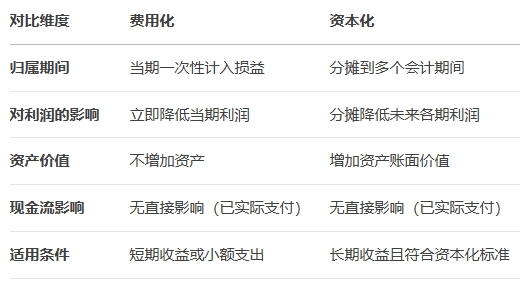 費用化與資本化是會計處理支出的兩種不同方式,其核心區(qū)別在于支出的歸屬期間和對財務報表的影響。以下是具體解析: 一、費用化(Expensing) 定義 將支出直接計入當期損益(利潤表),作為當期的費用處理。 常見場景: - 日常運營支出(如工資、水電費、廣告費) - 小額資產(chǎn)購置(如辦公用品) - 維護修理費用(如設備小修) 特點 1. 當期影響:直接減少當期利潤(稅前利潤下降)。 2. 稅務處理:可在當期全額抵稅。 3. 財務報表體現(xiàn):體現(xiàn)在利潤表的“費用”項目中(如管理費用、銷售費用)。 舉例: 公司花費1萬元維修設備,直接計入“維修費用”,減少當期利潤1萬元。 二、資本化(Capitalization) 定義 將支出計入資產(chǎn)成本,通過折舊或攤銷的方式分攤到多個會計期間。 常見場景: - 購置長期資產(chǎn)(如廠房、設備、專利) - 大額研發(fā)支出(符合資本化條件的部分) - 資產(chǎn)升級改造(延長使用壽命或提升性能) 特點 1. 長期影響:資產(chǎn)成本分期計入損益(通過折舊或攤銷),分攤到未來多年。 2. 稅務處理:抵稅時間延后(每年按折舊/攤銷額抵稅)。 3. 財務報表體現(xiàn): - 資產(chǎn)負債表:增加資產(chǎn)價值; - 利潤表:分期通過“折舊費用”或“攤銷費用”體現(xiàn)。 舉例: 公司花費100萬元購買設備,計入“固定資產(chǎn)”,分10年折舊,每年折舊10萬元,減少當年利潤10萬元。 三、核心區(qū)別 四、關鍵判斷標準 1. 未來經(jīng)濟利益: - 資本化需滿足:支出能帶來長期經(jīng)濟利益(如資產(chǎn)壽命延長、性能提升)。 2. 會計準則要求: - 例如,研發(fā)支出中,研究階段費用化,開發(fā)階段符合條件的可資本化(如專利技術)。 五、實務中的影響 - 企業(yè)利潤:資本化會提高當期利潤(費用延后),但降低未來利潤(需分攤)。 - 稅務籌劃:費用化可減少當期應稅所得,資本化則遞延稅負。 - 財務指標:資本化可能美化短期報表(如ROA、資產(chǎn)負債率)。 總結 費用化強調(diào)短期匹配(支出與當期收益對應),資本化強調(diào)長期匹配(支出與多期收益對應)。企業(yè)需根據(jù)會計準則和實際業(yè)務性質(zhì)選擇處理方式,避免濫用資本化操縱利潤。 |