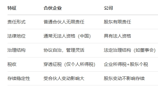 1. 以合伙協(xié)議為基礎(chǔ) - 合伙企業(yè)基于合伙人之間自愿簽訂的合伙協(xié)議設(shè)立,約定各方的權(quán)利、義務(wù)、利潤(rùn)分配、風(fēng)險(xiǎn)承擔(dān)等事項(xiàng)。協(xié)議內(nèi)容靈活,體現(xiàn)高度自治性,與公司章程的法定強(qiáng)制性不同。 2. 合伙人責(zé)任形式多樣 - 普通合伙人(GP):承擔(dān)無(wú)限連帶責(zé)任,需以個(gè)人財(cái)產(chǎn)對(duì)企業(yè)債務(wù)負(fù)責(zé)。 - 有限合伙人(LP):僅以出資額為限承擔(dān)有限責(zé)任,不參與企業(yè)管理。 - 特殊普通合伙(如會(huì)計(jì)師事務(wù)所、律師事務(wù)所):普通合伙人在執(zhí)業(yè)中的過(guò)錯(cuò)造成債務(wù)時(shí),其他合伙人可免責(zé)(僅適用于專業(yè)服務(wù)機(jī)構(gòu))。 3. 共同出資、共同經(jīng)營(yíng)、共擔(dān)風(fēng)險(xiǎn) - 合伙人通常共同出資(資金、勞務(wù)、技術(shù)等),共同參與經(jīng)營(yíng)管理(普通合伙人),并共享收益、共擔(dān)虧損。 4. 企業(yè)財(cái)產(chǎn)由合伙人共有 - 合伙人的出資及企業(yè)積累的財(cái)產(chǎn)歸全體合伙人共有,分配或轉(zhuǎn)讓需經(jīng)全體合伙人同意。 5. 利潤(rùn)與虧損分配靈活 - 利潤(rùn)和虧損的分配比例由合伙協(xié)議約定,可自由協(xié)商(如按出資比例、貢獻(xiàn)度等),若無(wú)約定則通常平均分配。 6. 普通合伙人掌握控制權(quán) - 管理權(quán):普通合伙人負(fù)責(zé)執(zhí)行合伙事務(wù),有限合伙人不參與日常經(jīng)營(yíng)(否則可能喪失有限責(zé)任保護(hù))。 - 人合性:強(qiáng)調(diào)合伙人之間的信任關(guān)系,新合伙人加入需全體一致同意。 7. 稅收穿透性(避免雙重征稅) - 合伙企業(yè)本身不繳納企業(yè)所得稅,利潤(rùn)直接“穿透”至合伙人,由合伙人繳納個(gè)人所得稅。 8. 存續(xù)受合伙人變動(dòng)影響 - 人合性強(qiáng),若合伙人死亡、退出或喪失償債能力,可能導(dǎo)致企業(yè)解散(除非協(xié)議另有約定)。例如: - 普通合伙人退出需其他合伙人一致同意; - 有限合伙人退出可通過(guò)轉(zhuǎn)讓財(cái)產(chǎn)份額實(shí)現(xiàn)。 9. 法律地位(依地區(qū)而定) - 在中國(guó),合伙企業(yè)不具有法人資格(不同于公司),但在某些國(guó)家(如美國(guó))可能被賦予法人資格。 常見類型 1. 普通合伙企業(yè):所有合伙人均為普通合伙人,承擔(dān)無(wú)限責(zé)任。 2. 有限合伙企業(yè):由普通合伙人(GP)和有限合伙人(LP)組成,常見于私募基金、風(fēng)險(xiǎn)投資。 3. 特殊普通合伙企業(yè):適用于專業(yè)服務(wù)機(jī)構(gòu),責(zé)任范圍有限。 與公司的核心區(qū)別 以上特征使合伙企業(yè)適用于強(qiáng)調(diào)信任合作、靈活性高且需稅收優(yōu)化的場(chǎng)景(如初創(chuàng)企業(yè)、投資基金、專業(yè)服務(wù)機(jī)構(gòu))。具體規(guī)則需參考當(dāng)?shù)亍逗匣锲髽I(yè)法》。 |
