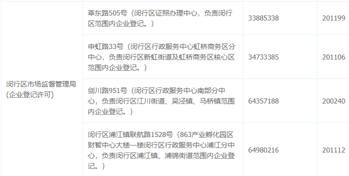 閔行的工商局地址在哪里?閔行區(qū)哪里辦理營(yíng)業(yè)執(zhí)照? 莘東路505號(hào)(閔行區(qū)證照辦理中心,負(fù)責(zé)閔行區(qū)范圍內(nèi)企業(yè)登記。) 33885338 申虹路33號(hào)(閔行區(qū)行政服務(wù)中心虹橋商務(wù)區(qū)分中心,負(fù)責(zé)閔行區(qū)新虹街道及虹橋商務(wù)區(qū)核心區(qū)范圍內(nèi)企業(yè)登記。) 34733385 劍川路951號(hào)(閔行區(qū)行政服務(wù)中心南部分中心,負(fù)責(zé)閔行區(qū)江川街道、吳涇鎮(zhèn)、馬橋鎮(zhèn)范圍內(nèi)企業(yè)登記。)64357188 閔行區(qū)浦江鎮(zhèn)聯(lián)航路1528號(hào)(863產(chǎn)業(yè)孵化園區(qū)財(cái)智中心大樓一樓閔行區(qū)行政服務(wù)中心浦江分中心,負(fù)責(zé)閔行區(qū)浦江鎮(zhèn)、浦錦街道范圍內(nèi)企業(yè)登記。) 64980216 |