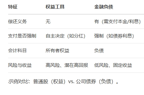 權(quán)益工具是指企業(yè)為籌集資金而發(fā)行的、代表所有者權(quán)益的金融工具,通常證明持有者在企業(yè)中的所有權(quán)份額。以下是對(duì)權(quán)益工具的詳細(xì)說明: 1. 權(quán)益工具的主要類型 - 普通股(Common Stock) 代表公司的基礎(chǔ)所有權(quán),股東享有投票權(quán)、分紅權(quán)和剩余資產(chǎn)分配權(quán)(但排在債權(quán)人和優(yōu)先股之后)。 - 優(yōu)先股(Preferred Stock) 具有固定股息,通常無投票權(quán),但在分紅和清算時(shí)優(yōu)先于普通股。某些優(yōu)先股可轉(zhuǎn)換為普通股。 - 其他形式 - 認(rèn)股權(quán)證(Warrants):允許持有者在特定價(jià)格購(gòu)買公司股票。 - 股票期權(quán)(Stock Options):?jiǎn)T工激勵(lì)計(jì)劃中常見的權(quán)益工具。 - 可轉(zhuǎn)換債券(Convertible Bonds):雖屬負(fù)債,但包含轉(zhuǎn)股選擇權(quán),可能轉(zhuǎn)為權(quán)益工具。 2. 核心特點(diǎn) - 所有權(quán)屬性:持有者是公司所有者,非債權(quán)人。 - 無償還義務(wù):企業(yè)無需償還本金,與債務(wù)工具(如債券)形成對(duì)比。 - 剩余索取權(quán):公司清算時(shí),權(quán)益工具持有者在債權(quán)人和優(yōu)先股之后獲得剩余資產(chǎn)。 - 收益不確定性:分紅取決于公司盈利情況,無強(qiáng)制支付義務(wù)。 - 參與管理權(quán):普通股股東通?赏ㄟ^投票參與重大決策。 3. 會(huì)計(jì)處理 - 發(fā)行時(shí): 收到的資金計(jì)入所有者權(quán)益(如“股本”和“資本公積”),不確認(rèn)為負(fù)債。 *示例*:公司發(fā)行每股1元的普通股100萬股,股本增加100萬元,若溢價(jià)發(fā)行(如每股5元),則400萬元計(jì)入資本公積。 - 股利處理: 分紅作為利潤(rùn)分配,計(jì)入“應(yīng)付股利”,而非損益表中的費(fèi)用。 - 回購(gòu)與注銷: 回購(gòu)自身權(quán)益工具(如股票)會(huì)導(dǎo)致所有者權(quán)益減少,庫存股作為權(quán)益的抵減項(xiàng)。 4. 與金融負(fù)債的區(qū)別 5. 應(yīng)用場(chǎng)景 - 企業(yè)融資:初創(chuàng)公司通過發(fā)行股票吸引風(fēng)險(xiǎn)投資,無需承擔(dān)債務(wù)壓力。 - 擴(kuò)張與并購(gòu):上市公司增發(fā)股票籌集資金,用于業(yè)務(wù)擴(kuò)展。 - 員工激勵(lì):授予股票期權(quán),將員工利益與公司長(zhǎng)期績(jī)效綁定。 - 優(yōu)化資本結(jié)構(gòu):發(fā)行優(yōu)先股可在不稀釋控制權(quán)的情況下融資。 6. 注意事項(xiàng) - 混合工具:如可轉(zhuǎn)換債券需根據(jù)條款判斷歸類為負(fù)債或權(quán)益(如IAS 32準(zhǔn)則)。 - 優(yōu)先股的特殊性:某些優(yōu)先股可能有強(qiáng)制贖回條款,需作為負(fù)債處理。 - 國(guó)際準(zhǔn)則差異:不同會(huì)計(jì)準(zhǔn)則(如IFRS vs. US GAAP)可能影響分類,例如對(duì)可贖回工具的處理。 總結(jié) 權(quán)益工具是企業(yè)獲取長(zhǎng)期資本的重要方式,賦予投資者所有權(quán)及收益權(quán),但無固定還款壓力。理解其與負(fù)債的區(qū)別、會(huì)計(jì)處理及應(yīng)用場(chǎng)景,對(duì)企業(yè)融資決策和投資者分析至關(guān)重要。 |