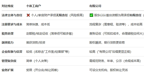 選擇注冊有限公司還是個體工商戶,主要取決于你的業(yè)務規(guī)模、風險承擔能力、發(fā)展目標、稅務規(guī)劃以及管理復雜度。兩者在法律責任、稅收、管理要求、融資能力等方面有顯著區(qū)別。 以下是關鍵對比,幫助你做出決策: 1. 法律責任與風險承擔: 個體工商戶: 經(jīng)營者對債務承擔無限連帶責任。如果經(jīng)營失敗,資不抵債,需要用經(jīng)營者的個人和家庭財產(chǎn)來償還債務。風險極高。 有限公司: 股東以其認繳的出資額為限對公司承擔有限責任。公司以其全部資產(chǎn)對債務承擔責任。股東的個人財產(chǎn)(與公司無關的部分)受到保護。 風險相對可控。 2. 主體資格與名稱: 個體工商戶: 不是法人,不具備獨立的法律人格。名稱中不能包含“公司”字樣,通常為`XX市XX區(qū)XX商行/經(jīng)營部/工作室`等。 有限公司: 是獨立的法人實體。名稱可以體現(xiàn)行業(yè)和規(guī)模,以“有限公司”或“有限責任公司”結(jié)尾(如`XX科技有限公司`),企業(yè)形象更正規(guī)、可信度高。 3. 稅收政策與成本: 個體工商戶: 主要繳納增值稅(小規(guī)模納稅人通常有優(yōu)惠)和個人所得稅(經(jīng)營所得)。 個人所得稅:通常采用核定征收(稅務機關核定一個應稅所得率或定額)或查賬征收。 核定征收簡單,但可能稅負不公(盈利少時可能多交,盈利多時可能少交);查賬征收需建賬,按5%-35%的五級超額累進稅率計稅。 有限公司: 主要繳納增值稅和企業(yè)所得稅。 企業(yè)所得稅:標準稅率25%(符合條件的小型微利企業(yè)有優(yōu)惠稅率)。股東分紅時還需繳納20%的個人所得稅(存在“雙重征稅”)。 查賬征收是主流,要求建立規(guī)范賬目,成本費用可按規(guī)定稅前扣除,稅務籌劃空間相對較大。 4. 管理要求與合規(guī)成本: 個體工商戶: 管理簡單,決策靈活(經(jīng)營者一人決定)。財務、稅務要求相對寬松(但仍需按規(guī)定記賬報稅),無需年度審計和公示。 有限公司: 管理相對規(guī)范復雜。需要設立股東會、董事會/執(zhí)行董事、監(jiān)事會/監(jiān)事(視規(guī)模而定),有規(guī)范的財務制度和流程。必須進行年度報告公示(年報)、可能需審計(如達到標準),合規(guī)成本(如代理記賬、審計等費用)更高。 5. 融資能力與發(fā)展?jié)摿Γ?/div> 個體工商戶: 融資渠道非常有限,主要依賴自有資金或個人借貸。銀行等金融機構(gòu)對其貸款意愿較低。業(yè)務擴展(如開分店)、引入外部投資者、品牌建設、業(yè)務轉(zhuǎn)讓(只能轉(zhuǎn)讓資產(chǎn),不能轉(zhuǎn)讓“字號”主體)等受限較大。 有限公司: 更容易獲得外部融資(銀行貸款、風險投資、股權融資等)。便于業(yè)務擴展(設立分公司、子公司)、品牌化運營、引入合作伙伴、進行股權激勵、轉(zhuǎn)讓股權或整體出售公司。發(fā)展空間和可能性更大。 6. 信譽度與客戶感知: 個體工商戶: 在商業(yè)合作(尤其與大公司)、投標、平臺入駐等方面,可能面臨一定門檻或不被優(yōu)先考慮,信譽度相對較低。 有限公司: 企業(yè)形象更正規(guī)、可信度更高,更容易獲得客戶、供應商和合作伙伴的信任,在商業(yè)合作、項目投標、平臺入駐(如天貓、京東自營)等方面更具優(yōu)勢。 二、如何選擇? 優(yōu)先考慮注冊“有限公司”的情況: 業(yè)務有一定規(guī);蝾A期發(fā)展較快。 經(jīng)營風險較高(如涉及大額合同、可能產(chǎn)生債務糾紛、產(chǎn)品質(zhì)量責任風險大)。 需要保護個人和家庭財產(chǎn)(這是最重要因素之一)。 計劃引入外部投資人或合伙人。 希望未來融資(貸款或股權融資)。 目標客戶是大企業(yè)或政府機構(gòu)(對供應商資質(zhì)有要求)。 計劃打造品牌、開設分支機構(gòu)或未來出售公司。 需要更規(guī)范的運營和更大的稅務籌劃空間。 可以考慮注冊“個體工商戶”的情況: 業(yè)務規(guī)模很小,啟動資金有限,風險極低(如小型零售、個人手藝服務、網(wǎng)店小賣家)。 經(jīng)營靈活,由個人或家庭經(jīng)營,沒有擴張計劃。 對個人財產(chǎn)風險有充分認知且愿意承擔無限責任。 追求最簡單快捷的注冊和最低的合規(guī)成本。 行業(yè)或業(yè)務特性特別適合個體經(jīng)營(如街邊小店、個人工作室)。 三、重要提示 1. “有限責任”不是絕對的: 如果有限公司股東濫用公司法人獨立地位和股東有限責任(如個人財產(chǎn)與公司財產(chǎn)混同、抽逃出資),可能會被“刺破公司面紗”,要求股東承擔連帶責任。 2. 稅務籌劃需合法: 無論選擇哪種形式,都應依法納稅。所謂的“個體戶稅負一定低”或“公司能隨意避稅”都是誤解,稅務處理需根據(jù)實際經(jīng)營情況和稅法規(guī)定進行。 3. 行業(yè)準入要求: 某些特定行業(yè)對主體形式可能有要求(如部分金融、教育培訓業(yè)務可能要求必須是公司)。 4. 注冊資本認繳制: 有限公司注冊資本多為認繳制,但需注意認繳金額代表了股東承擔責任的限額,不宜盲目虛高。特定行業(yè)或招標項目可能對實繳資本有要求。 5. 長遠眼光: 即使初期規(guī)模小,如果看好業(yè)務前景或有潛在風險,建議一步到位注冊有限公司,避免后期轉(zhuǎn)型帶來的麻煩(如個體戶無法直接轉(zhuǎn)為公司,需注銷重開,客戶合同、資質(zhì)、知識產(chǎn)權等需重新處理)。 總結(jié)建議 如果追求安全、長遠
