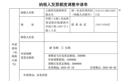 - 《增值稅專用發(fā)票最高開票限額申請單》或《增值稅發(fā)票核定調(diào)整申請表》: 這是核心表格,在電子稅務(wù)局可下載或在線填寫。需明確申請調(diào)整的類型(如:單張最高限額從10萬升至100萬;每月領(lǐng)用數(shù)量從25份升至50份)和理由。