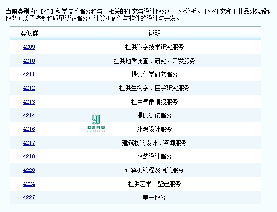 商標(biāo)第42類明細(xì),商標(biāo)第42類注冊范圍,商標(biāo)第四十二大類內(nèi)容包括什么? 第四十二類 研發(fā)質(zhì)控、IT服務(wù)、建筑咨詢 科學(xué)技術(shù)服務(wù)和與之相關(guān)的研究與設(shè)計服務(wù);工業(yè)分析與研究;計算機硬件與軟件的設(shè)計與開發(fā)。 【注釋】 第四十二類主要包括由人,個人或集體,提供的涉及復(fù)雜領(lǐng)域活動的理論和實踐服務(wù);這些服務(wù)由諸如化學(xué)家、物理學(xué)家、工程師、計算機程序員等專業(yè)人員提供。 本類尤其包括: 由從事評估、估算以及從事科技領(lǐng)域研究與報告的工程師和科學(xué)家提供的服務(wù)(包括技術(shù)咨詢); 保護(hù)計算機數(shù)據(jù)、個人和金融信息安全的計算機及技術(shù)服務(wù),以及監(jiān)測未經(jīng)授權(quán)接入數(shù)據(jù)和信息的計算機及技術(shù)服務(wù); 為醫(yī)務(wù)目的所做的科學(xué)研究服務(wù)。 本類尤其不包括: 商業(yè)研究與開發(fā)(第三十五類); 文字處理和計算機檔案管理(第三十五類); 金融與財政評估(第三十六類); 采礦和石油開采(第三十七類); 計算機(硬件)的安裝與維修服務(wù)(第三十七類); 由專業(yè)人員諸如醫(yī)生、獸醫(yī)和精神分析醫(yī)生所提供的服務(wù)(第四十四類); 醫(yī)療服務(wù)(第四十四類); 花園設(shè)計(第四十四類); 法律服務(wù)(第四十五類)。 商標(biāo)第42類明細(xì),商標(biāo)第42類注冊范圍,商標(biāo)第四十二大類內(nèi)容包括什么? 【4209】提供研究和開發(fā)服務(wù) 【4210】提供地質(zhì)調(diào)查、研究、開發(fā)服務(wù) 【4211】提供化學(xué)研究服務(wù) 【4212】提供生物學(xué)研究服務(wù) 【4213】提供氣象情報服務(wù) 【4214】提供測試服務(wù) 【4216】外觀設(shè)計服務(wù) 【4217】建筑物的設(shè)計、咨詢服務(wù) 【4218】服裝設(shè)計服務(wù) 【4220】計算機編程及相關(guān)服務(wù) 【4224】提供藝術(shù)品鑒定服務(wù) 【4227】單一服務(wù) 以上是91開業(yè)網(wǎng)小編為您整理的關(guān)于商標(biāo)第42類明細(xì),商標(biāo)第42類注冊范圍,商標(biāo)第四十二大類內(nèi)容包括什么的內(nèi)容,希望對您有所幫助。 |