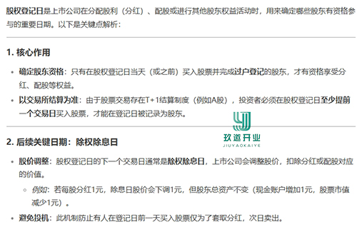 對于公司股東來說股權(quán)登記日和除息日是非常重要的,這二者注意區(qū)別在定義、日期以及需要進(jìn)行工作不同,產(chǎn)生的意義也不一樣。面是上海公司注冊平臺小編為大家?guī)砉蓹?quán)登記日與除息日的區(qū)別的全部內(nèi)容。希望能夠幫助大家解決相應(yīng)的問題,當(dāng)然大家也可以咨詢法律快車。 一、股權(quán)登記日與除息日的區(qū)別 主要區(qū)別如下: 1、日期不同 股權(quán)登記日(date of record)是指董事會規(guī)定的登記有權(quán)領(lǐng)取股利的股東名單的截止日期,股權(quán)登記日通常在股利宣告日的兩周以后,在股權(quán)登記日擁有公司股票的人能夠分得股利。 股權(quán)除息日,股權(quán)登記日的次日。 2、日期定義不同 股權(quán)除息日,這一天購入該公司股票的股東是不可以享有上一年度分紅的“新股東”,不再享有公司此次分紅配股。 3、需要進(jìn)行的工作不同 在股票的除權(quán)除息日,證券交易所都要計算出股票的除權(quán)除息價,以作為市場投資者在除權(quán)除息日開盤價的參考。 在股權(quán)登記日這一天仍持有或買進(jìn)該公司的股票的投資者是可以享有此次分紅或參與此次配股的股東,這部分股東名冊由證券登記公司統(tǒng)計在案,屆時將所應(yīng)送的紅股、現(xiàn)金紅利或者配股權(quán)劃到這部分股東的帳上。 二、股權(quán)登記日的內(nèi)容 股權(quán)登記日是在上市公司分派股利或進(jìn)行配股時規(guī)定一個日期. 在此日期收盤前的股票為“含權(quán)股票”或“含息股票”,即有權(quán)領(lǐng)取股利的股東有資格登記截止日期。只有在股權(quán)登記日收盤前在公司股東名冊上登記的股東,才有權(quán)分享股利。在該日收盤后持有該股股票的投資者沒有享受分紅配股的權(quán)利,通常該日稱為登記日或R日,在登記日下午收盤時(下午3點(diǎn)鐘)持有該公司的股票就由券商系統(tǒng)自動幫你登記.交易所在該日收盤之后將認(rèn)真核對有關(guān)資料,對享受分紅配股權(quán)利的投資者進(jìn)行核對后登記,全部過程均由交易所主機(jī)自動完成,而不需要投資者去辦理登記手續(xù),這也是證券無紙化交易的一個優(yōu)點(diǎn)。股權(quán)登記日當(dāng)天收盤前買入股票,可以享受分紅派息! 三、股權(quán)登記日的意義 上市公司發(fā)放股息紅利的形式雖然有四種,但滬深股市的上市公司進(jìn)行利潤分配一般只采用股票紅利和現(xiàn)金紅利兩種,即統(tǒng)稱所說的送紅股和派現(xiàn)金。當(dāng)上市公司向股東分派股息時,就要對股票進(jìn)行除息;當(dāng)上市公司向股東送紅股時,就要對股票進(jìn)行除權(quán)。 當(dāng)一家上市公司宣布上年度有利潤可供分配并準(zhǔn)備予以實施時,則該只股票就稱為含權(quán)股,因為持有該只股票就享有分紅派息的權(quán)利。在這一階段,上市公司一般要宣布一個時間稱為“股權(quán)登記日”,即在該日收市時持有該股票的股東就享有分紅的權(quán)利。 在以前的股票有紙交易中,為了證明對上市公司享有分紅權(quán),股東們要在公司宣布的股權(quán)登記日予以登記,且只有在此日被記錄在公司股東名冊上的股票持有者,才有資格領(lǐng)取上市公司分派的股息紅利。實行股票的無紙化交易后,股權(quán)登記都通過計算機(jī)交易系統(tǒng)自動進(jìn)行,股民不必到上市公司或登記公司進(jìn)行專門的登記,只要在登記的收市時還擁有股票,股東就自動享有分紅的權(quán)利。 進(jìn)行股權(quán)登記后,股票將要除權(quán)除息,也就是將股票中含有的分紅權(quán)利予以解除。除權(quán)除息都在股權(quán)登記日的收盤后進(jìn)行。除權(quán)之后再購買股票的股東將不再享有分紅派息的權(quán)利。 |