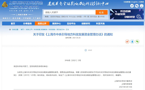 上海市中央引導(dǎo)地方科技發(fā)展資金管理辦法 第一章 總 則 第一條(目的依據(jù)) 為規(guī)范上海市中央引導(dǎo)地方科技發(fā)展資金管理,提高引導(dǎo)資金使用效益,推進(jìn)本市科技創(chuàng)新驅(qū)動(dòng)發(fā)展,根據(jù)《中央引導(dǎo)地方科技發(fā)展資金管理辦法》(財(cái)教〔2019〕129號(hào))的規(guī)定,結(jié)合本市實(shí)際,制定本辦法。 第二條(適用范圍) 上海市中央引導(dǎo)地方科技發(fā)展資金(以下簡(jiǎn)稱引導(dǎo)資金)是指中央財(cái)政用于支持和引導(dǎo)本市落實(shí)國(guó)家創(chuàng)新驅(qū)動(dòng)發(fā)展戰(zhàn)略和科技改革發(fā)展政策、優(yōu)化區(qū)域科技創(chuàng)新環(huán)境、提升區(qū)域科技創(chuàng)新能力的中央和地方共同財(cái)政事權(quán)轉(zhuǎn)移支付資金。 第三條(管理原則) 引導(dǎo)資金管理遵循“中央引導(dǎo)、省級(jí)統(tǒng)籌,簡(jiǎn)政放權(quán)、激發(fā)活力,聚焦重點(diǎn)、突出績(jī)效”的原則。 第二章 組織管理和職責(zé) 第四條(管理部門(mén)) 引導(dǎo)資金由上海市科學(xué)技術(shù)委員會(huì)(以下簡(jiǎn)稱市科委)和上海市財(cái)政局(以下簡(jiǎn)稱市財(cái)政局)共同負(fù)責(zé)管理。 市科委負(fù)責(zé)制定中央引導(dǎo)地方科技發(fā)展資金相關(guān)管理政策,根據(jù)中央財(cái)政下達(dá)的年度預(yù)算,會(huì)同市財(cái)政局合理分配預(yù)算,制定年度引導(dǎo)資金實(shí)施方案,負(fù)責(zé)資金跟蹤管理、績(jī)效評(píng)價(jià)及日常監(jiān)管。 市財(cái)政局根據(jù)預(yù)算管理相關(guān)規(guī)定,負(fù)責(zé)引導(dǎo)資金的預(yù)算下達(dá)、資金撥付等工作,并會(huì)同市科委對(duì)專(zhuān)項(xiàng)資金使用情況進(jìn)行監(jiān)督檢查、績(jī)效評(píng)價(jià)。 第五條(使用引導(dǎo)資金的單位職責(zé)) 使用引導(dǎo)資金的單位作為項(xiàng)目的承擔(dān)單位,是使用引導(dǎo)資金的責(zé)任主體,主要職責(zé)是:嚴(yán)格執(zhí)行引導(dǎo)資金各項(xiàng)管理規(guī)定,建立健全科研、財(cái)務(wù)、誠(chéng)信等內(nèi)部管理制度;切實(shí)履行法人責(zé)任,規(guī)范管理使用資金,接受市科委等相關(guān)部門(mén)的指導(dǎo)、檢查并配合開(kāi)展績(jī)效評(píng)價(jià)、監(jiān)督檢查和驗(yàn)收等工作;項(xiàng)目下設(shè)課題的,課題承擔(dān)單位須接受項(xiàng)目承擔(dān)單位的指導(dǎo)、協(xié)調(diào)和監(jiān)督,對(duì)項(xiàng)目承擔(dān)單位負(fù)責(zé)。 第三章 支持范圍與支持方式 第六條(支持范圍) 引導(dǎo)資金支持以下四個(gè)方面: (一)自由探索類(lèi)基礎(chǔ)研究。主要指聚焦探索未知的科學(xué)問(wèn)題,結(jié)合基礎(chǔ)研究區(qū)域布局,自主設(shè)立的旨在開(kāi)展自由探索類(lèi)基礎(chǔ)研究的科技專(zhuān)項(xiàng)、科技基金等。 (二)科技創(chuàng)新基地建設(shè)。主要指符合本市相關(guān)規(guī)劃等建設(shè)的各類(lèi)科技創(chuàng)新基地,包括依托大學(xué)、科研院所、企業(yè)、轉(zhuǎn)制科研機(jī)構(gòu)設(shè)立的科技創(chuàng)新基地(含省部共建國(guó)家重點(diǎn)實(shí)驗(yàn)室、臨床醫(yī)學(xué)研究中心等),以及具有獨(dú)立法人資格的產(chǎn)業(yè)技術(shù)研究院、技術(shù)創(chuàng)新中心、新型研發(fā)機(jī)構(gòu)等。 (三)科技成果轉(zhuǎn)移轉(zhuǎn)化。主要指本市針對(duì)區(qū)域重點(diǎn)產(chǎn)業(yè)等開(kāi)展科技成果轉(zhuǎn)移轉(zhuǎn)化活動(dòng),包括技術(shù)轉(zhuǎn)移機(jī)構(gòu)、人才隊(duì)伍和技術(shù)市場(chǎng)建設(shè),以及公益屬性明顯、引導(dǎo)帶動(dòng)作用突出、惠及人民群眾廣泛的科技成果轉(zhuǎn)化示范項(xiàng)目等。 (四)區(qū)域創(chuàng)新體系建設(shè)。主要指國(guó)家自主創(chuàng)新示范區(qū)、國(guó)家科技創(chuàng)新中心、綜合性國(guó)家科學(xué)中心、可持續(xù)發(fā)展議程創(chuàng)新示范區(qū)、國(guó)家農(nóng)業(yè)高新技術(shù)產(chǎn)業(yè)示范區(qū)、創(chuàng)新型城區(qū)/園區(qū)等區(qū)域創(chuàng)新體系建設(shè),重點(diǎn)支持跨區(qū)域研發(fā)合作和區(qū)域內(nèi)科技型中小企業(yè)科技研發(fā)活動(dòng)。 第七條(支持方式) 為充分發(fā)揮資金的引導(dǎo)作用,提高資金使用效率,引導(dǎo)資金采用事前直接補(bǔ)助或事后補(bǔ)助等方式予以支持。支持自由探索類(lèi)基礎(chǔ)研究、科技創(chuàng)新基地建設(shè)和區(qū)域創(chuàng)新體系建設(shè)的資金,可采用直接補(bǔ)助、后補(bǔ)助、以獎(jiǎng)代補(bǔ)等多種投入方式。支持科技成果轉(zhuǎn)移轉(zhuǎn)化的資金,可采用風(fēng)險(xiǎn)補(bǔ)償、后補(bǔ)助、創(chuàng)投引導(dǎo)等財(cái)政投入方式。 第八條(資金禁用) 引導(dǎo)資金不得用于支付各種罰款、捐款、贊助、投資、償還債務(wù)等支出,不得用于行政事業(yè)單位編制內(nèi)在職人員工資性支出和離退休人員離退休費(fèi),以及國(guó)家、本市規(guī)定禁止列支的其他支出。 第四章 項(xiàng)目和預(yù)算管理 第九條(項(xiàng)目申報(bào)) 市科委、市財(cái)政局按照科技部、財(cái)政部的要求,圍繞國(guó)家和本市科技創(chuàng)新發(fā)展目標(biāo)和年度工作重點(di