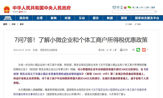 為進(jìn)一步支持小微企業(yè)和個(gè)體工商戶發(fā)展,財(cái)政部、稅務(wù)總局近日聯(lián)合發(fā)布《關(guān)于實(shí)施小微企業(yè)和個(gè)體工商戶所得稅優(yōu)惠政策的公告》(財(cái)政部 稅務(wù)總局公告2021年第12號(hào))明確,對(duì)小型微利企業(yè)年應(yīng)納稅所得額不超過100萬(wàn)元的部分,在《財(cái)政部 稅務(wù)總局關(guān)于實(shí)施小微企業(yè)普惠性稅收減免政策的通知》(財(cái)稅〔2019〕13號(hào))第二條規(guī)定的優(yōu)惠政策基礎(chǔ)上,再減半征收企業(yè)所得稅;對(duì)個(gè)體工商戶年應(yīng)納稅所得額不超過100萬(wàn)元的部分,在現(xiàn)行優(yōu)惠政策基礎(chǔ)上,減半征收個(gè)人所得稅。 為方便納稅人準(zhǔn)確理解、精準(zhǔn)享受相關(guān)政策,國(guó)家稅務(wù)總局同步發(fā)布《關(guān)于落實(shí)支持小型微利企業(yè)和個(gè)體工商戶發(fā)展所得稅優(yōu)惠政策有關(guān)事項(xiàng)的公告》(國(guó)家稅務(wù)總局公告2021年第8號(hào)),就有關(guān)問題進(jìn)行解讀。今天帶你了解 稅收優(yōu)惠政策的適用范圍是什么? 自2021年1月1日至2022年12月31日,對(duì)小型微利企業(yè)和個(gè)體工商戶年應(yīng)納稅所得額不超過100萬(wàn)元的部分,在現(xiàn)行優(yōu)惠政策基礎(chǔ)上,再減半征收所得稅。 小型微利企業(yè)和個(gè)體工商戶不區(qū)分征收方式,均可享受減半政策。 享受稅收優(yōu)惠政策的程序是怎樣的? 小型微利企業(yè)和個(gè)體工商戶在預(yù)繳和匯算清繳所得稅時(shí)均可享受減半政策,享受政策時(shí)無(wú)需進(jìn)行備案,通過填寫企業(yè)所得稅納稅申報(bào)表,或個(gè)人所得稅納稅申報(bào)表和減免稅事項(xiàng)報(bào)告表相關(guān)欄次,即可享受。 對(duì)于通過電子稅務(wù)局申報(bào)的小型微利企業(yè)和個(gè)體工商戶,稅務(wù)機(jī)關(guān)將自動(dòng)為其提供申報(bào)表和報(bào)告表(僅個(gè)人所得稅)中該項(xiàng)政策的預(yù)填服務(wù)。實(shí)行簡(jiǎn)易申報(bào)的定期定額個(gè)體工商戶,稅務(wù)機(jī)關(guān)按照減免后的稅額進(jìn)行稅款劃繳。 個(gè)體工商戶的減免稅額怎么計(jì)算? 減免稅額=(個(gè)體工商戶經(jīng)營(yíng)所得應(yīng)納稅所得額不超過100萬(wàn)元部分的應(yīng)納稅額-其他政策減免稅額×個(gè)體工商戶經(jīng)營(yíng)所得應(yīng)納稅所得額不超過100萬(wàn)元部分÷經(jīng)營(yíng)所得應(yīng)納稅所得額)×(1-50%) 舉例說明如下: 【例】納稅人李某經(jīng)營(yíng)個(gè)體工商戶C,年應(yīng)納稅所得額為80000元(適用稅率10%,速算扣除數(shù)1500),同時(shí)可以享受殘疾人政策減免稅額2000元,那么李某該項(xiàng)政策的減免稅額=[(80000×10%-1500)-2000]×(1-50%)=2250元。 【例】納稅人吳某經(jīng)營(yíng)個(gè)體工商戶D,年應(yīng)納稅所得額為1200000元(適用稅率35%,速算扣除數(shù)65500),同時(shí)可以享受殘疾人政策減免稅額6000元,那么吳某該項(xiàng)政策的減免稅額=[(1000000×35%-65500)-6000×1000000÷1200000]×(1-50%)=139750元。 實(shí)際上,這一計(jì)算規(guī)則我們已經(jīng)內(nèi)嵌到電子稅務(wù)局信息系統(tǒng)中,稅務(wù)機(jī)關(guān)將為納稅人提供申報(bào)表和報(bào)告表預(yù)填服務(wù),符合條件的納稅人準(zhǔn)確、如實(shí)填報(bào)經(jīng)營(yíng)情況數(shù)據(jù),系統(tǒng)可自動(dòng)計(jì)算減免稅金額。 個(gè)體工商戶今年經(jīng)營(yíng)所得已繳稅款的,還能享受優(yōu)惠政策嗎? 為向納稅人最大程度釋放減稅紅利,個(gè)體工商戶今年經(jīng)營(yíng)所得已經(jīng)繳納稅款的,也能享受稅收優(yōu)惠。 具體辦法是,2021年1月1日至本公告發(fā)布前,個(gè)體工商戶已經(jīng)繳納當(dāng)年經(jīng)營(yíng)所得個(gè)人所得稅的,可自動(dòng)抵減以后月份的稅款,當(dāng)年抵減不完的可在匯算清繳時(shí)辦理退稅;也可直接申請(qǐng)退還應(yīng)減免的稅款。 取得多處經(jīng)營(yíng)所得的個(gè)體工商戶如何享受優(yōu)惠政策? 按照現(xiàn)行政策規(guī)定,納稅人從兩處以上取得經(jīng)營(yíng)所得的,應(yīng)當(dāng)選擇向其中一處經(jīng)營(yíng)管理所在地主管稅務(wù)機(jī)關(guān)辦理年度匯總申報(bào)。 若個(gè)體工商戶從兩處以上取得經(jīng)營(yíng)所得,需在辦理年度匯總納稅申報(bào)時(shí),合并個(gè)體工商戶經(jīng)營(yíng)所得年應(yīng)納稅所得額,重新計(jì)算減免稅額,多退少補(bǔ)。 舉例如下: 【例】納稅人張某同時(shí)經(jīng)營(yíng)個(gè)體工商戶A和個(gè)體工商戶B,年應(yīng)納稅所得額分別為80萬(wàn)元和50萬(wàn)元,那么張某在年度匯總納稅申報(bào)時(shí),可以享受減半征收個(gè)人所得稅政策的應(yīng)納稅所得額為100萬(wàn)元。 小型微利企業(yè)的實(shí)際應(yīng)納所得稅額和減免稅額的計(jì)算方法是什么? 小型微利企業(yè)年應(yīng)納稅所得額不超過100萬(wàn)元、超過100萬(wàn)元但不超過300萬(wàn)元的部分,分別減按12.5%、50%計(jì)入應(yīng)納稅所得額,按20%的稅率繳納企業(yè)所得稅。 示例如下: 【例】A企業(yè)經(jīng)過判斷符合小型微利企業(yè)條件。2021年第1季度預(yù)繳企業(yè)所得稅時(shí),相應(yīng)的應(yīng)納稅所得額為50萬(wàn)元,那么A企業(yè)實(shí)際應(yīng)納所